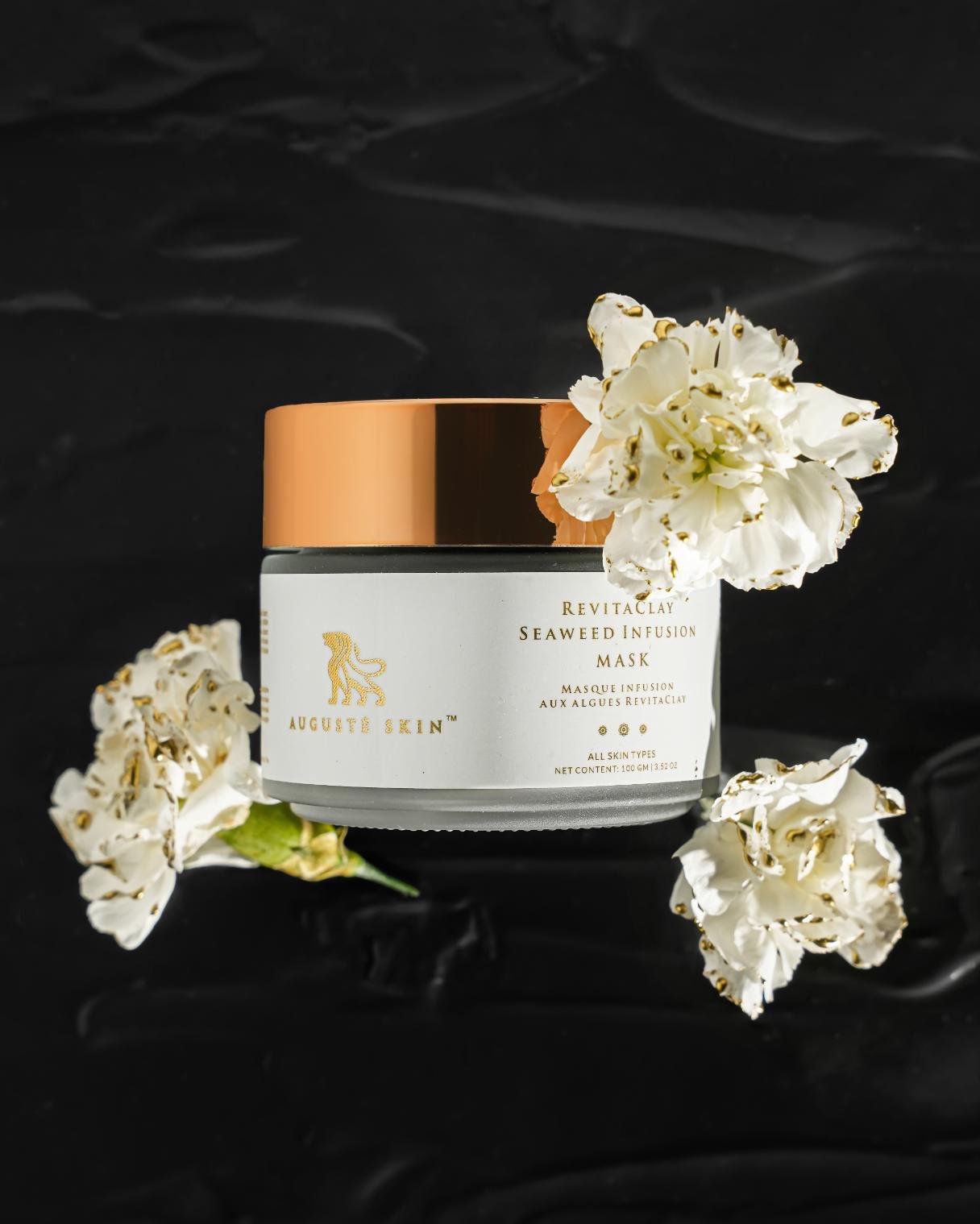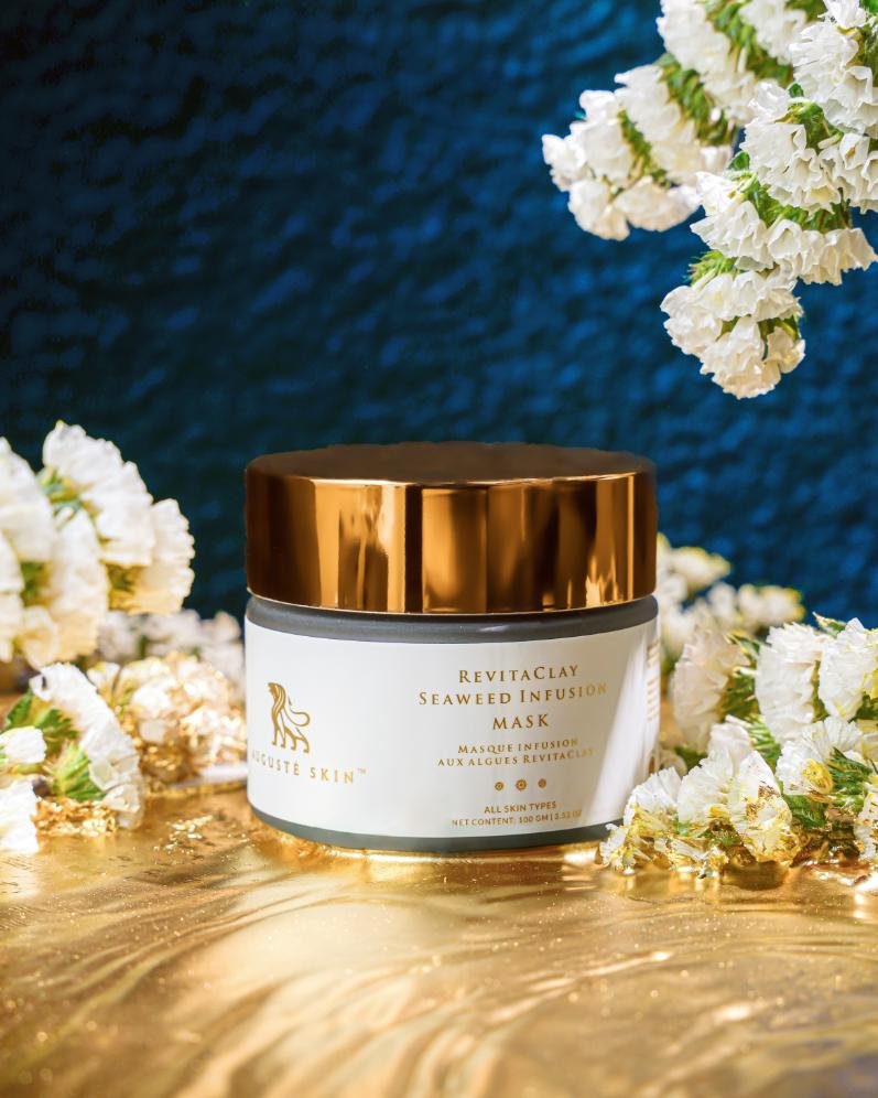 Augusté Skin’s RevitaClay Seaweed Infusion Mask contains collagen-stimulating properties and antioxidants from ginger extract and seaweed that protect against free radicals, promoting a youthful appearance. This balancing mask, with its pore-minimizing effects, leaves your skin refreshed, refined, and energised. Charged with the essence of nature, it deeply purifies and nourishes the skin, while enhancing skin elasticity. Indulge in a sensorial experience of RevitaClay Seaweed Infusion Mask that leaves your skin feeling refreshed, revitalized, and beautifully balanced.